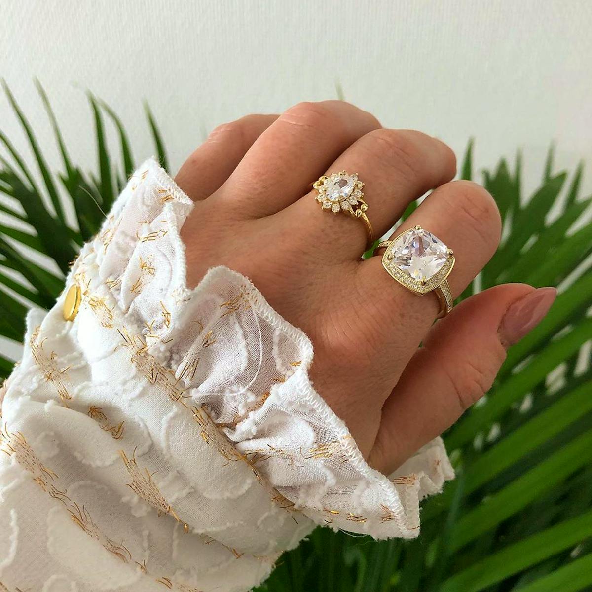 Incroyablement luxueuse, cette magnifique bague est ornée d'un grand zircon carré transparent au centre et de petits zircons tout autour du grand zircon et de l'anneau lui-même. L'aspect carré et massif donne un look super cool mélangé à un design féminin d'inspiration vintage.