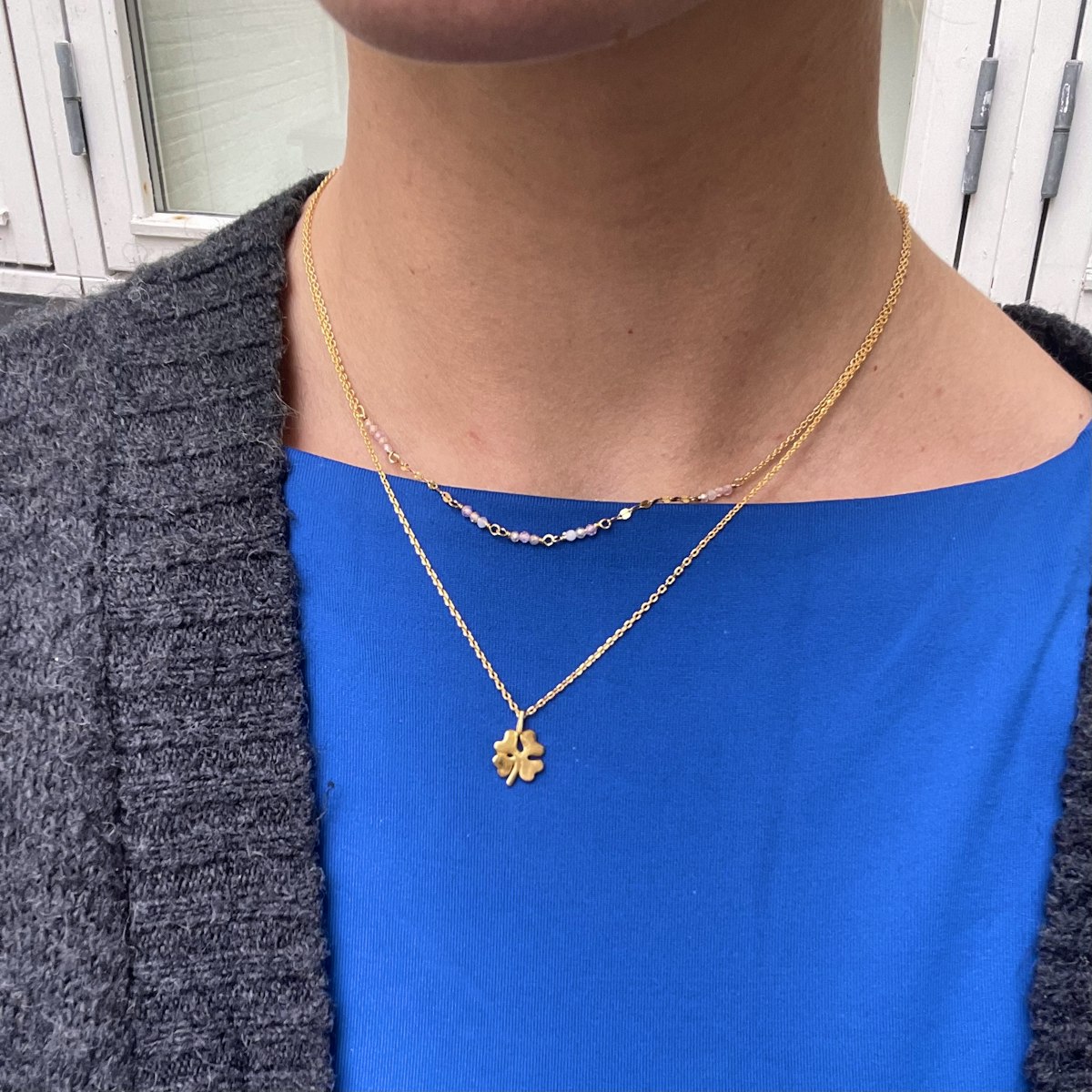 Organic Clover Necklace har mere størrelse end normalt. Den er klassisk og tager dig med på en rejse gennem tiden og nostalgi.