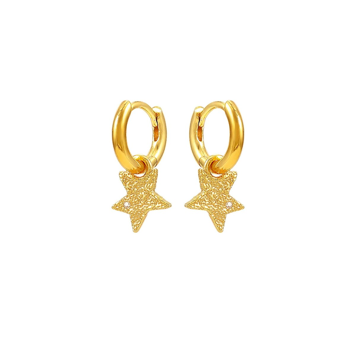 Disse smukke øreringe er håndlavet i 18K forgyldt sterlingsølv og har en bøjlediameter på 1,1 cm. Vedhænget måler 0,8 cm, og den samlede længde af øreringene er 2 cm, hvilket giver dem en elegant og delikat fremtoning. Det sofistikerede design gør dem ideelle til både hverdagsbrug og festlige lejligheder.