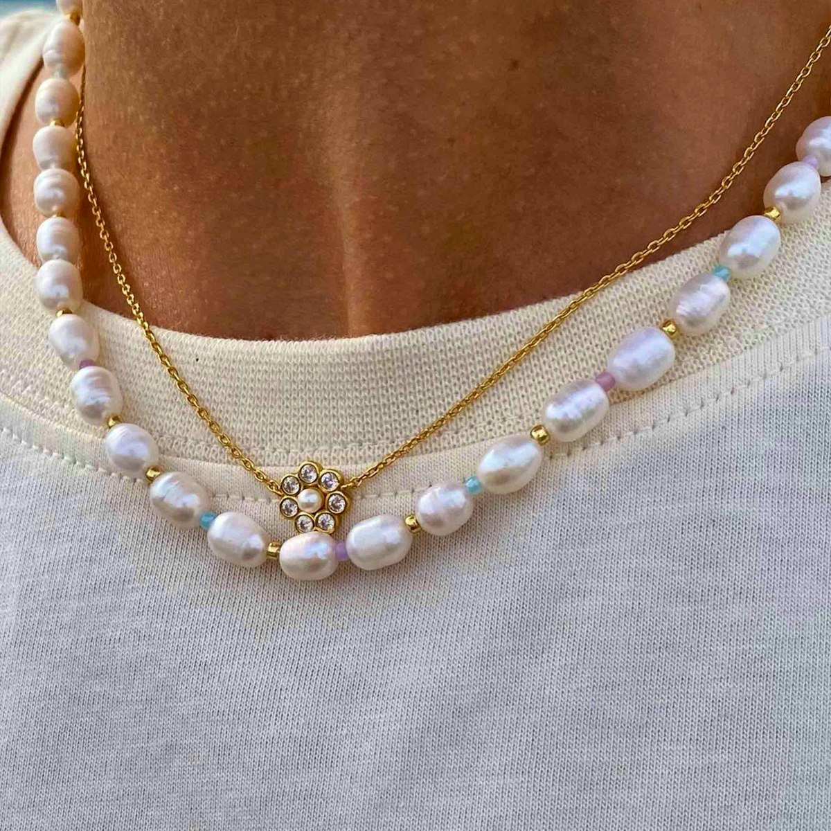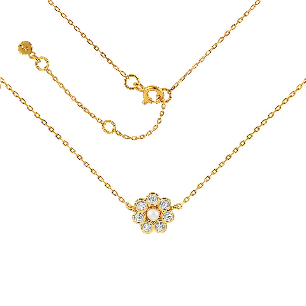 La chaîne est en argent sterling, plaquée d'or 18 carats, ce qui confère au collier une chaleur et une élégance éclatantes. De plus, les pierres en zircon cubique et la perle d'eau douce ajoutent une touche de luxe.