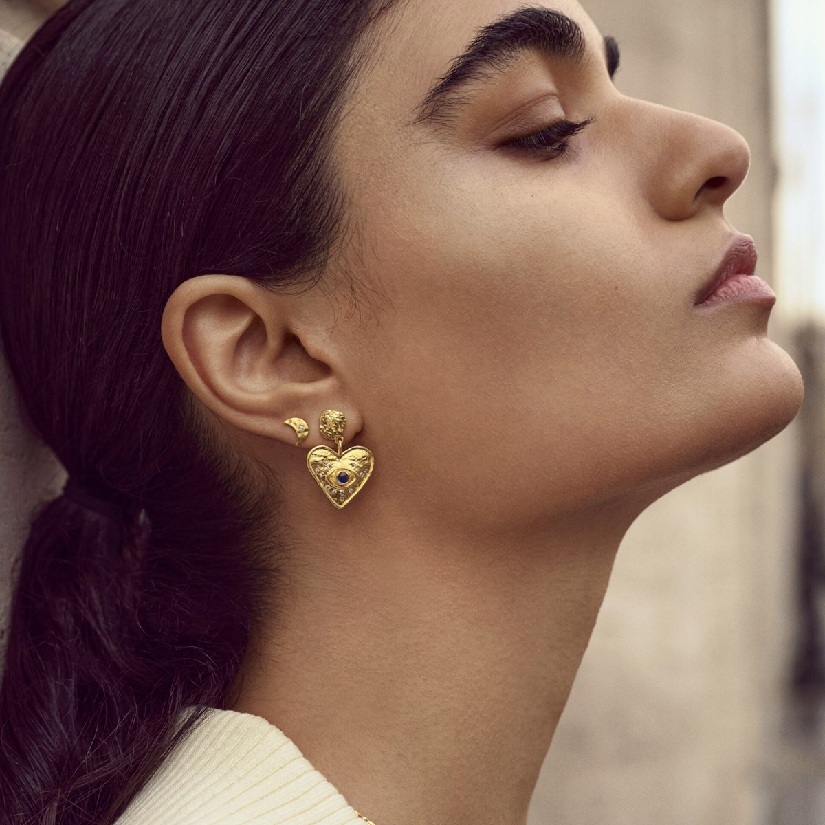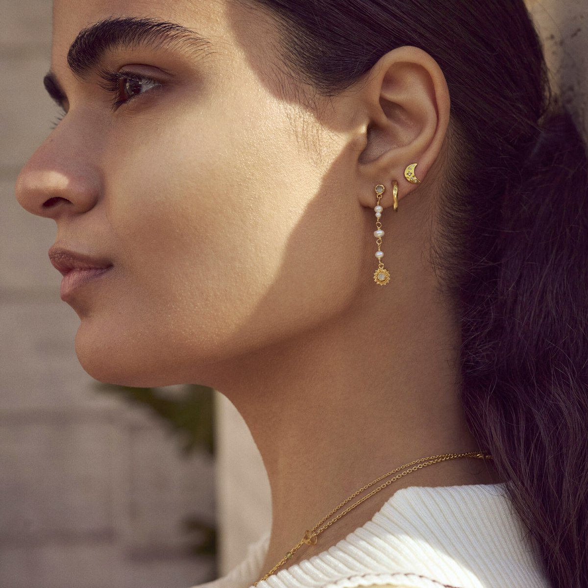 Et lille månepar med zirkoner, der glimter som stjerner. Aega var i den græske mytologi en nymfe, der endte som en stjernekonstellation på den evige himmel.