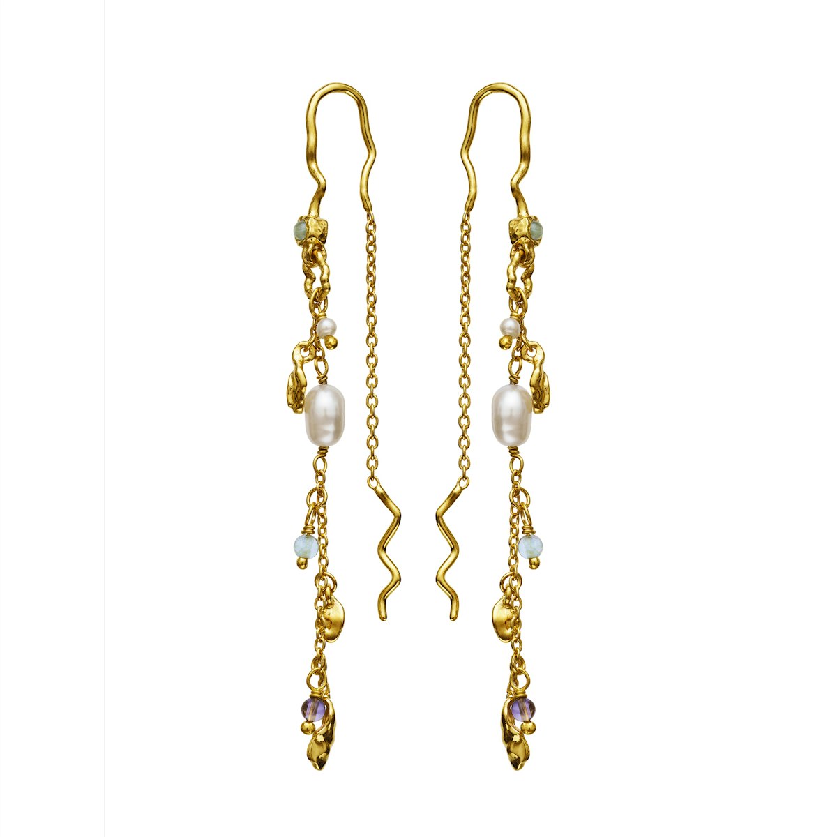 Les boucles d'oreilles Poppy de Maanesten sont un bijou unique qui associe des détails féminins à un design artistique et organique. Ces longues et élégantes boucles d'oreilles mesurent 61,5 mm et bougent légèrement lorsqu'elles sont portées, ce qui leur confère un aspect vibrant et sophistiqué. Le bijou est orné de diverses pierres et d'une délicate perle d'eau douce qui lui confère une touche naturelle et exclusive. Les détails torsadés du métal créent un aspect brut mais raffiné qui souligne la capacité de Maanesten à combiner le classique et le moderne.