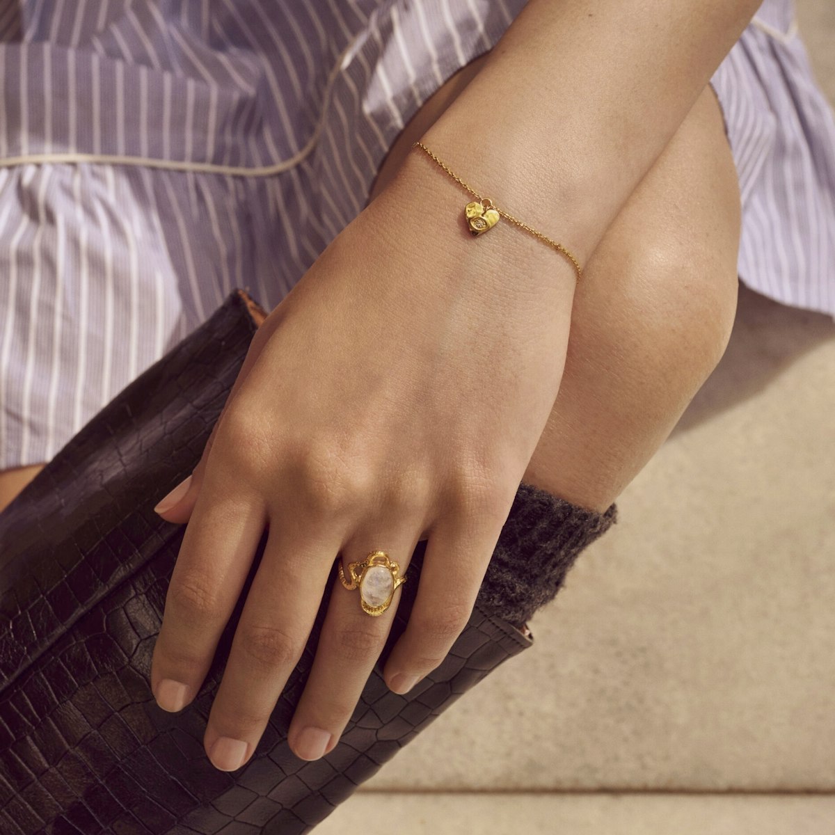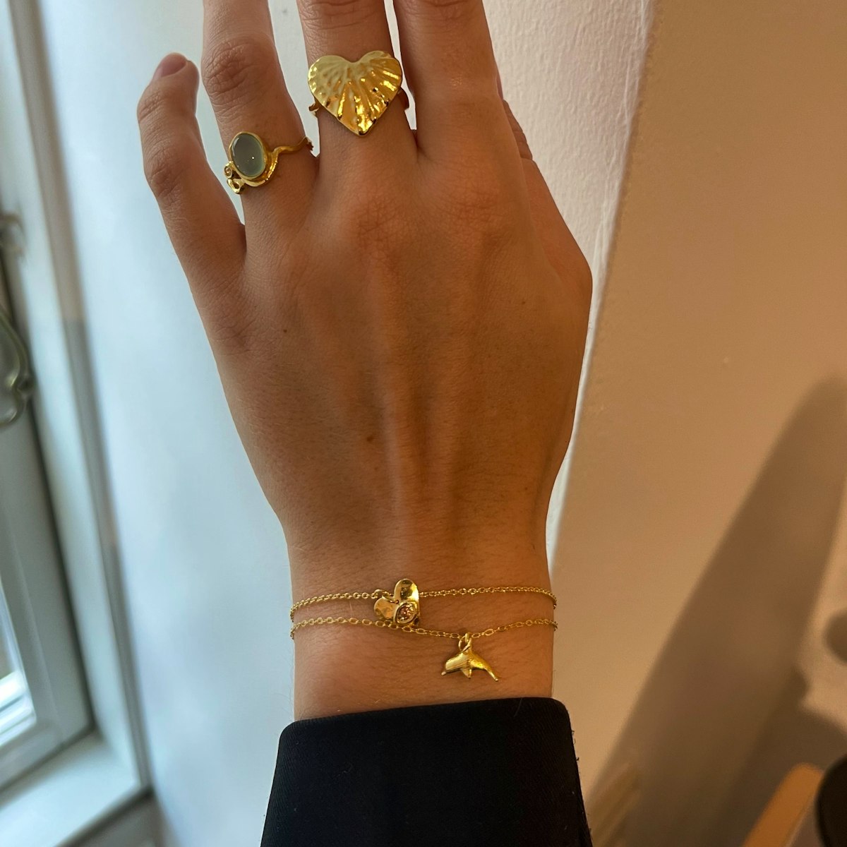 Dette smukke og iøjenfaldende armbånd fra Maanesten er en ægte perle indenfor moderne smykkedesign. Armbåndet er produceret i genanvendt sterlingsølv (925) og er belagt med 18 karat guld. Armbåndet har et elegant og minimalistisk design med en fin kæde, som bærer et delikat hjertevedhæng. Hjertet er ikke blot et symbol på kærlighed, men dets fine detaljer og blanke overflade gør det til en tidsløs tilføjelse til enhver smykkesamling. Det er det perfekte valg til både hverdagsbrug og særlige anledninger, hvor det kan stå alene eller kombineres med andre smykker for at skabe et mere lag-på-lag udtryk. Med dens justerbare kæde sikrer dette, at armbåndet kan tilpasses efter dit håndled. Maanestens fokus på kvalitet og detalje kommer tydeligt til udtryk i dette stykke, som både er stilfuldt og holdbart.
