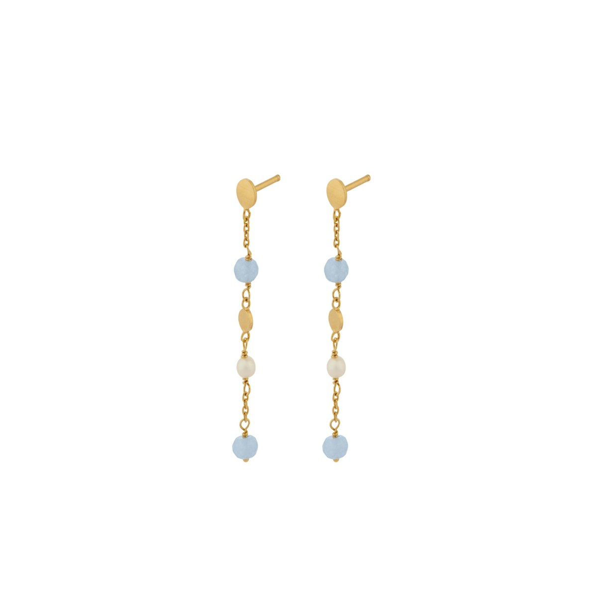 Elegante earchains bestående med skønne blå agater og ferskvandsperler.