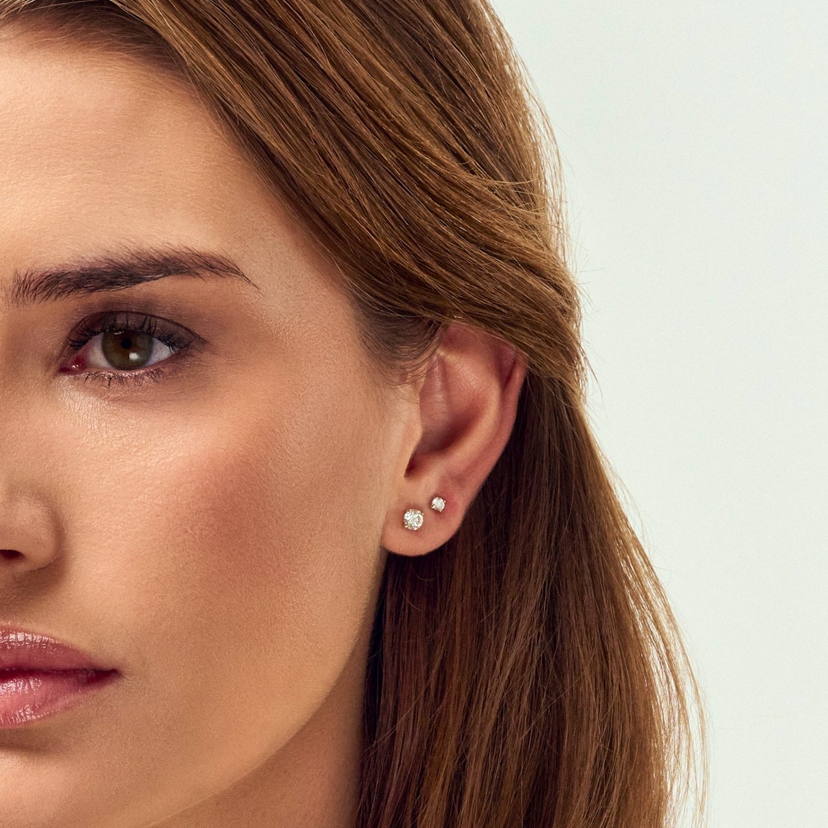 La surface polie souligne la beauté naturelle du diamant et met en valeur le design classique, synonyme d'élégance intemporelle. La boucle d'oreille peut être portée au quotidien ou lors d'occasions spéciales. Elle est disponible en or et en or blanc, ce qui vous permet de l'adapter à votre style personnel et à votre collection de bijoux.