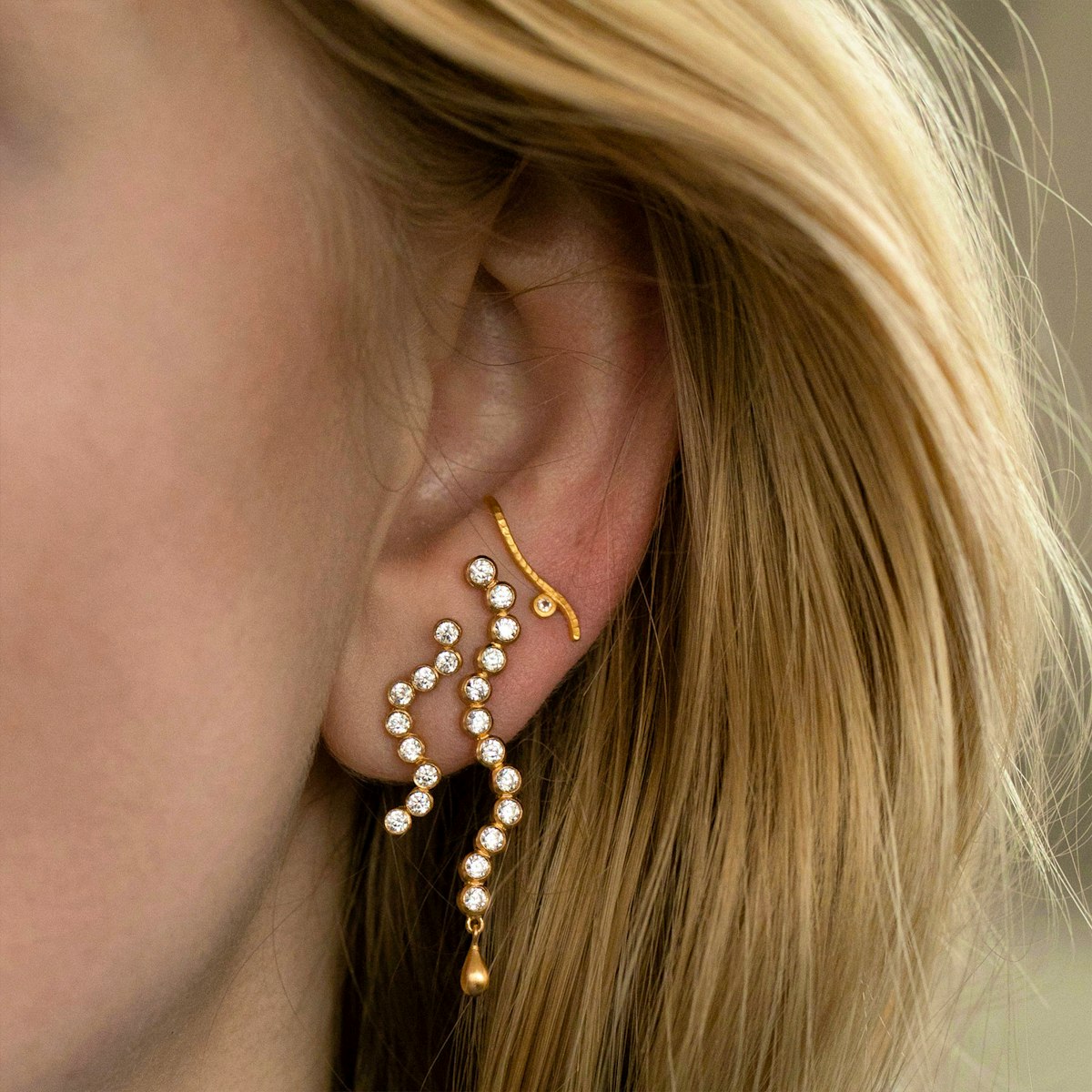 Midnight Sparkle Earring - Left fra Stine A er en længere ørering med 9 flotte og skindende klare zirkoner. Ønsker du et ørering par, kan du også købe Midnight Sparkle Earring - Right hos A-Hjort.